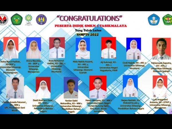 Ucapan Selamat untuk Siswa Siswi SMKN 1 Tasikmalaya yang telah lulus SNMPTN tahun 2022