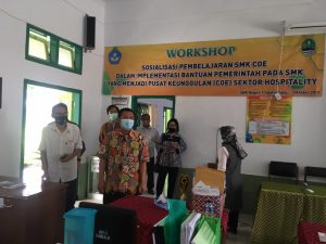 Selanjutnya menuju ruang praktikum perhotelan yaitu laundry, disana beliau menyampaikan pesan agar laundry dapat segera diaktifkan dengan maksimal meskipun dalam kondisi pandemi covid 19 misalkan dengan strategi online untuk pemesanannya. Salain meninjau pembangunan gedung pusat COE yang sedang dibangun juga bersilaturahmi dengan Bapak/Ibu Guru di ruang guru dan berpesan untuk efektifitas kegiatan KBM Daring.