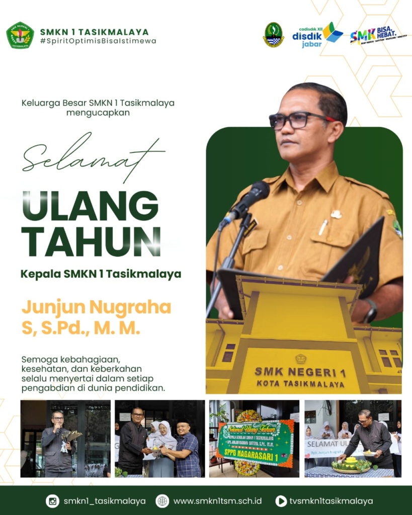 Kota Tasikmalaya — Suasana hangat dan penuh kebersamaan mewarnai perayaan hari ulang tahun Kepala SMKN 1 Kota Tasikmalaya, Bapak Junjun Nugraha Sutisna, S.Pd., M.M., yang dilaksanakan pada Kamis, 15 Januari 2026, bertempat di Lapangan SMKN 1 Kota Tasikmalaya.