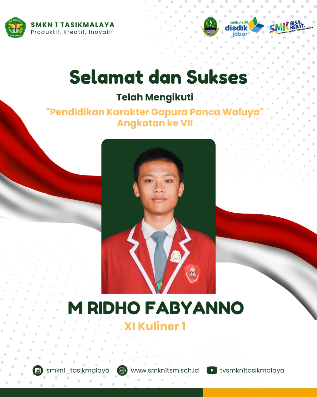 Keikutsertaan M Ridho Fabyanno dalam program ini menjadi bukti komitmen SMKN 1 Tasikmalaya dalam mendukung pengembangan karakter siswa secara menyeluruh, tidak hanya dalam bidang akademik dan kejuruan, tetapi juga dalam pembentukan kepribadian yang unggul.