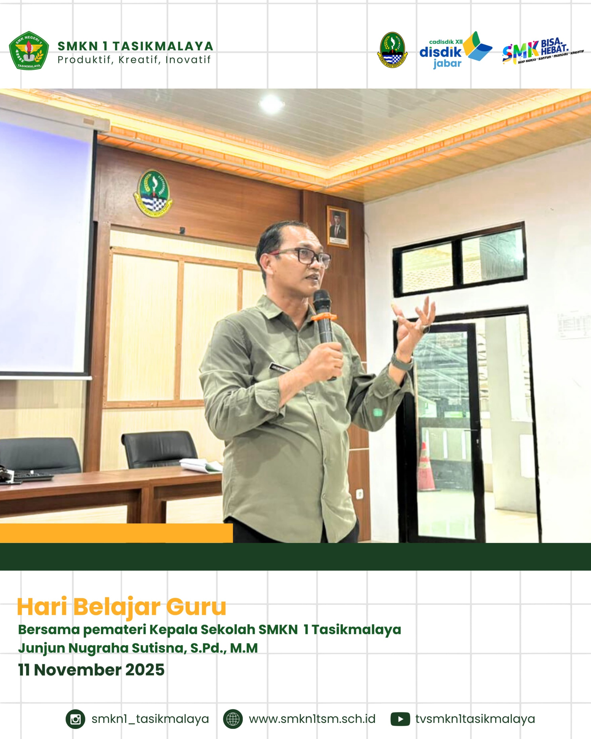 Tasikmalaya, 11 November 2025 — SMKN 1 Kota Tasikmalaya melaksanakan kegiatan Hari Belajar Guru pada Selasa, 11 November 2025. Kegiatan ini merupakan program pengembangan profesionalisme guru yang difokuskan untuk meningkatkan kompetensi pendidik dalam menghadapi tantangan pembelajaran di era digital.