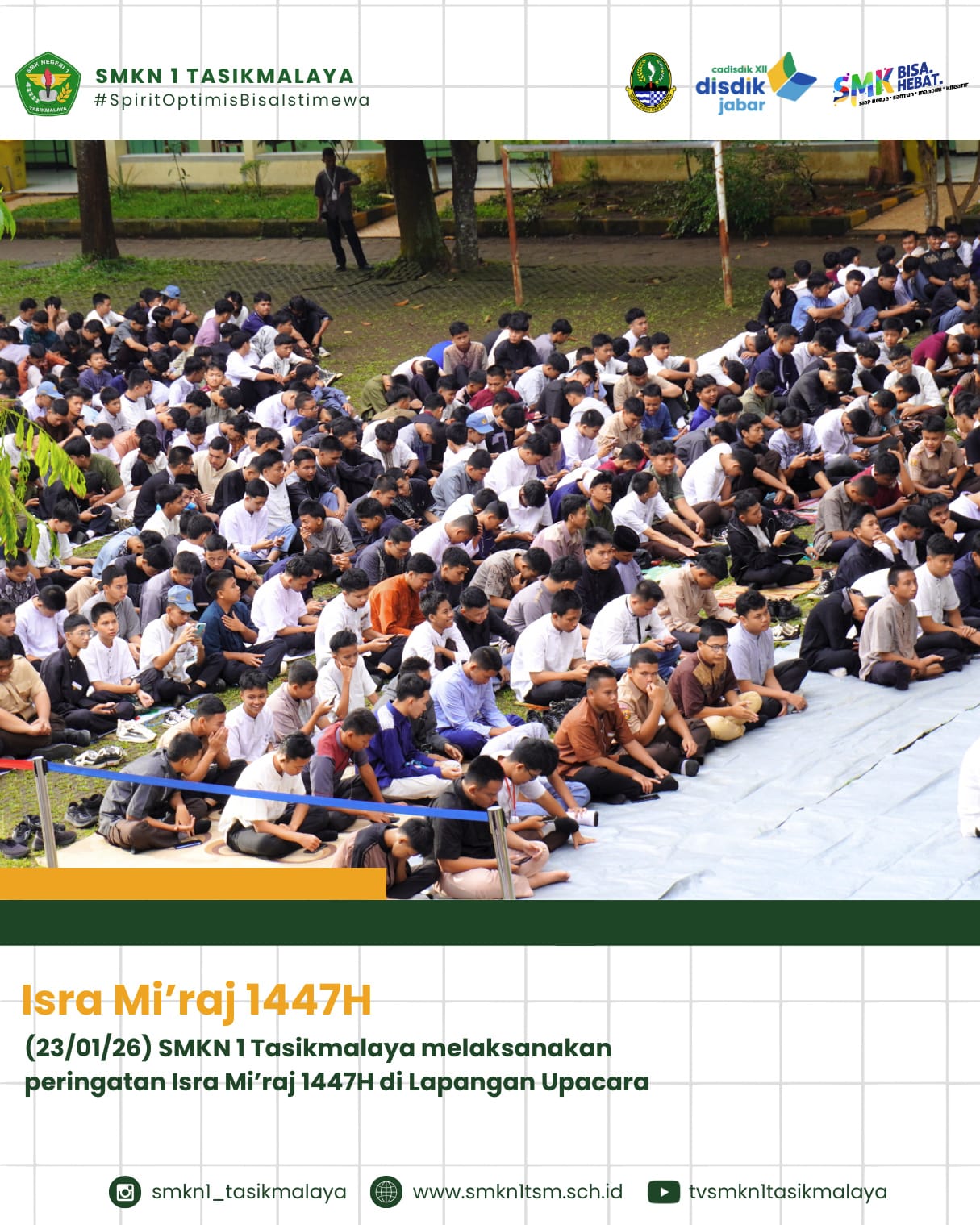 Tasikmalaya, 23 Januari 2026 — SMKN 1 Kota Tasikmalaya menggelar pengajian akbar dalam rangka memperingati peristiwa Isra Mi’raj Nabi Muhammad SAW, Jumat (23/1/2026). Kegiatan ini berlangsung khidmat di lingkungan sekolah dan diikuti oleh seluruh warga sekolah.