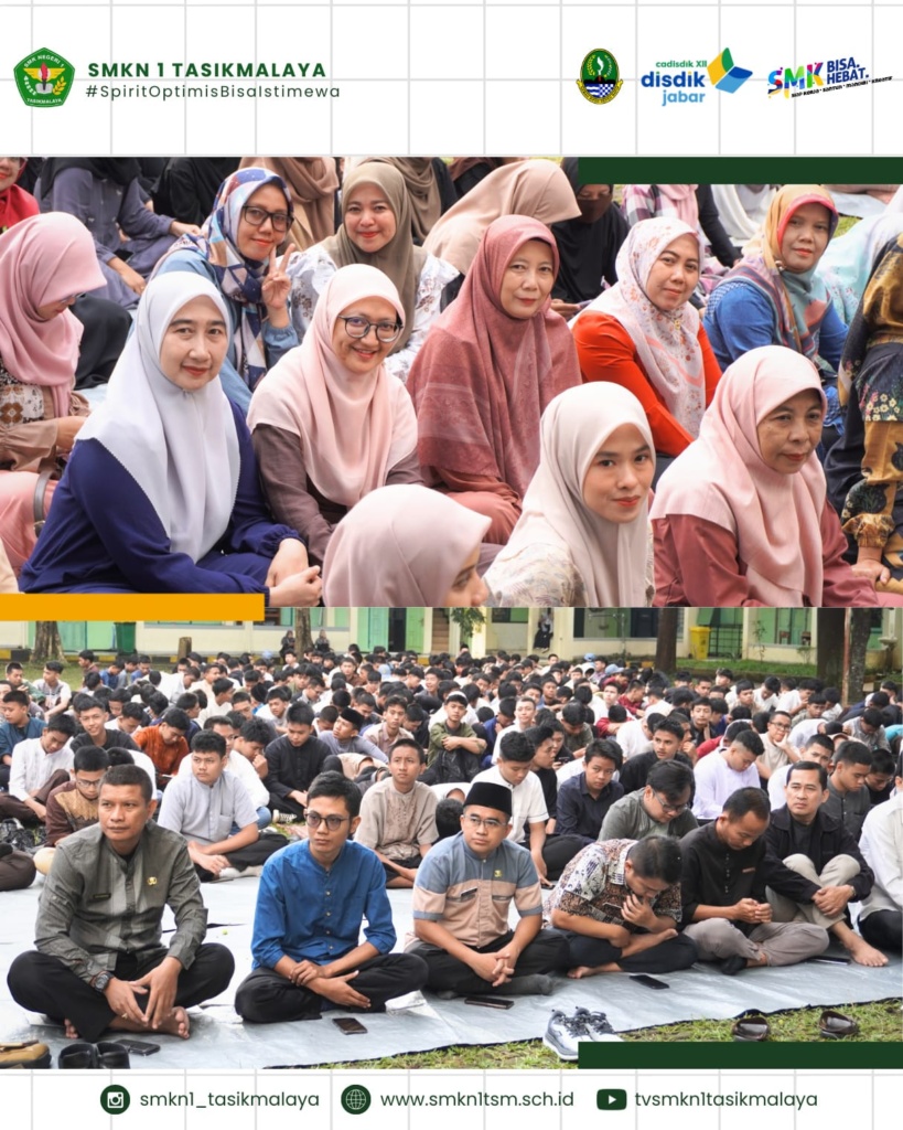 Kegiatan ini dihadiri oleh Kepala SMKN 1 Kota Tasikmalaya, Bapak Junjun Nugraha Sutisna, S.Pd., M.M., beserta jajaran guru, tenaga kependidikan, tenaga administrasi (TU), serta seluruh siswa-siswi kelas X dan XI.