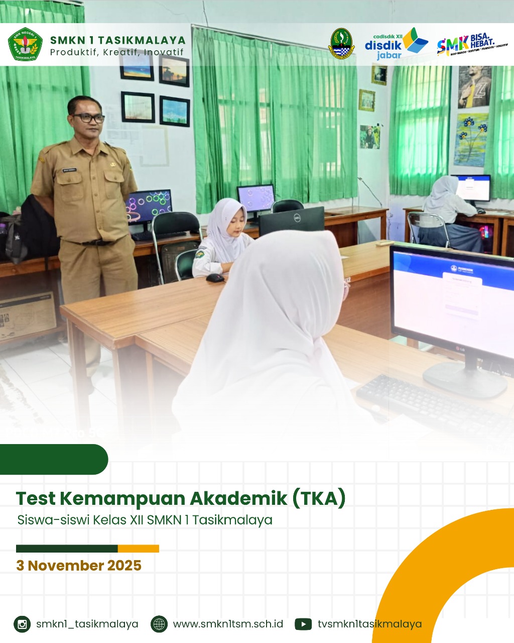 Tasikmalaya, 6 November 2025 – Sekolah Menengah Kejuruan Negeri (SMKN) 1 Tasikmalaya telah sukses menyelenggarakan Tes Kemampuan Akademik (TKA) yang berlangsung selama empat hari, dimulai pada Senin, 3 November 2025, dan berakhir hari ini, Kamis, 6 November 2025. Kegiatan penting ini berjalan lancar berkat persiapan matang dan kerja sama yang solid dari seluruh panitia.